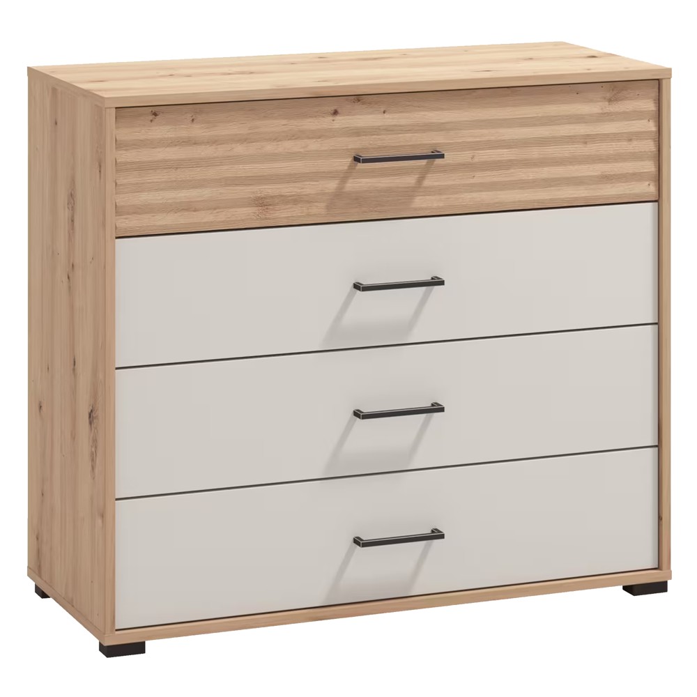 The Modena cabinet, crafted from oak wood with a natural and beige finish, is an elegant and practical choice for any living room, hallway, or storage space. With dimensions of 93x40xH82 cm, this chest offers ample space for storing items and accessories, giving the room a refined and modern look. The combination of the natural oak wood and soft beige tones creates a warm effect, making this piece suitable for any interior style. This chest is ideal for those seeking a functional and aesthetically pleasing piece of furniture that provides a clean and organized space.