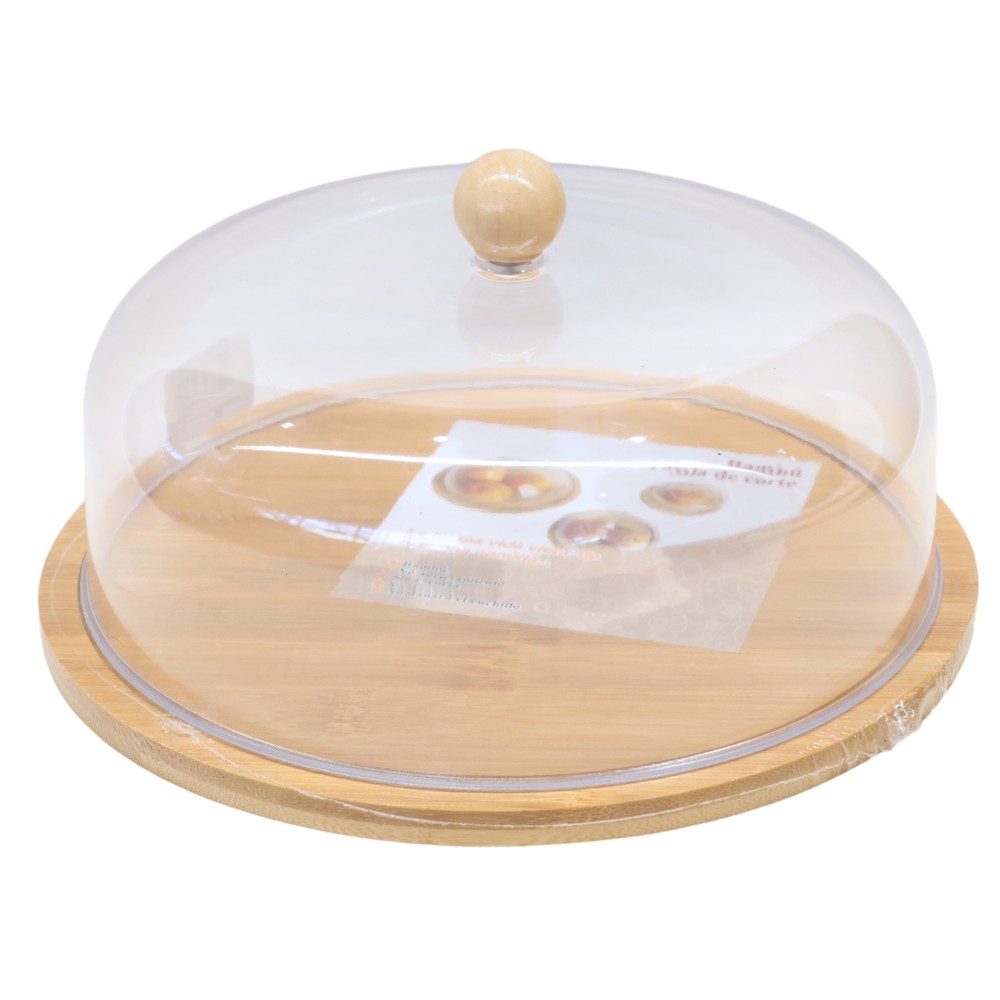 Holder and stand for cake with lid, made of bamboo and glass, in natural brown color, with a diameter of 25x25 cm. This product offers an excellent choice to hold and serve the cake with elegance.