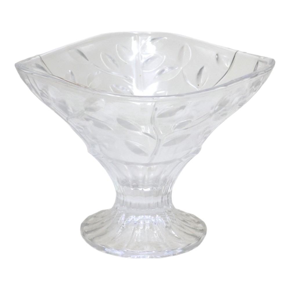 Bonbon or fruit of transparent glass with a diameter of 22.5 cm and height 16.5 cm. This product is an elegant addition to the décor of your home or to serve fruits and cakes.