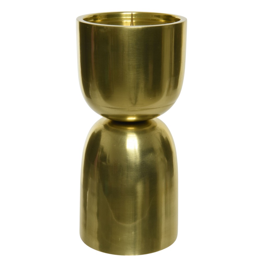 This aluminum candle holder measuring Ø9xH20 cm comes with a simple and elegant design in gold color, which brings a touch of luxury and sophistication to any environment. The bright and durable aluminum surface gives the holder a modern and refined look, while the compact dimensions make it suitable for tables, shelves or bedside tables. Ideal for creating a warm and welcoming atmosphere, this candle holder is an elegant choice that combines functionality with aesthetics.