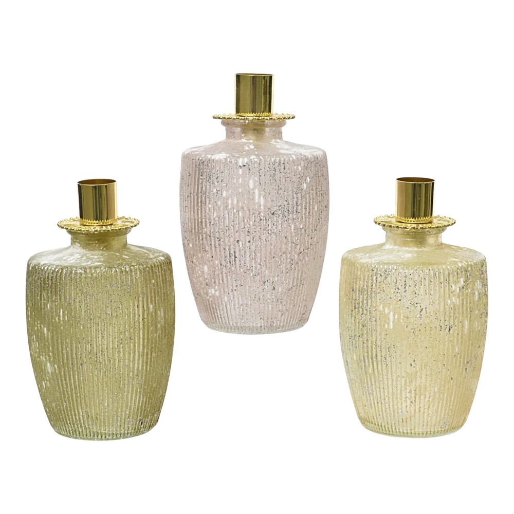 Candle holder, glass/metal, assorted, Ø9xH15 cm