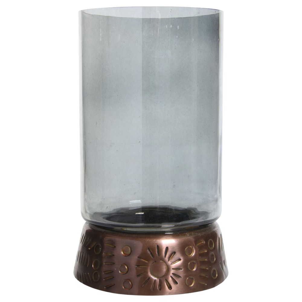 Candle holder, metal, glass, transparent, Dia.9.5xH18.5 cm