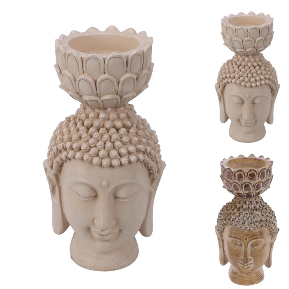 Add an detailed touch to your home with the Buddha-shaped candle holder. With its unique design, it is also a perfect decor for your home. It is made of polyresin and is very resistant.