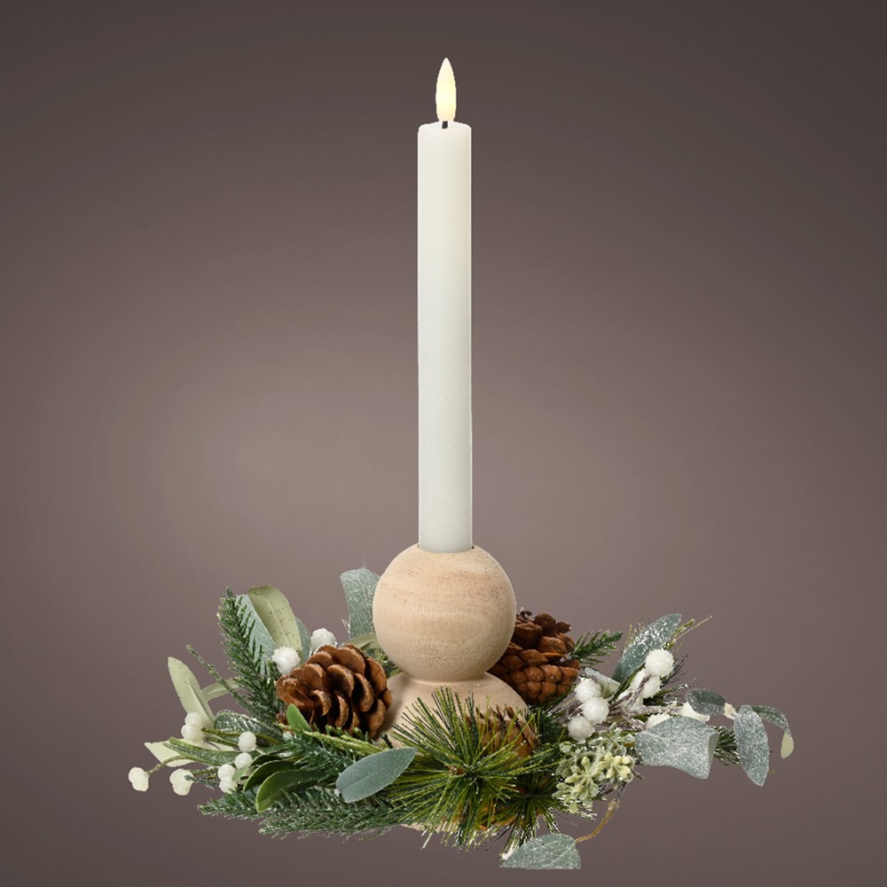 Add to the magical days of the new year the candle holder with pine element, it will give a special and welcoming look to your entrance area. Pay attention to the details and make unforgettable moments with the flames of the candles that sit beautifully in this holder.