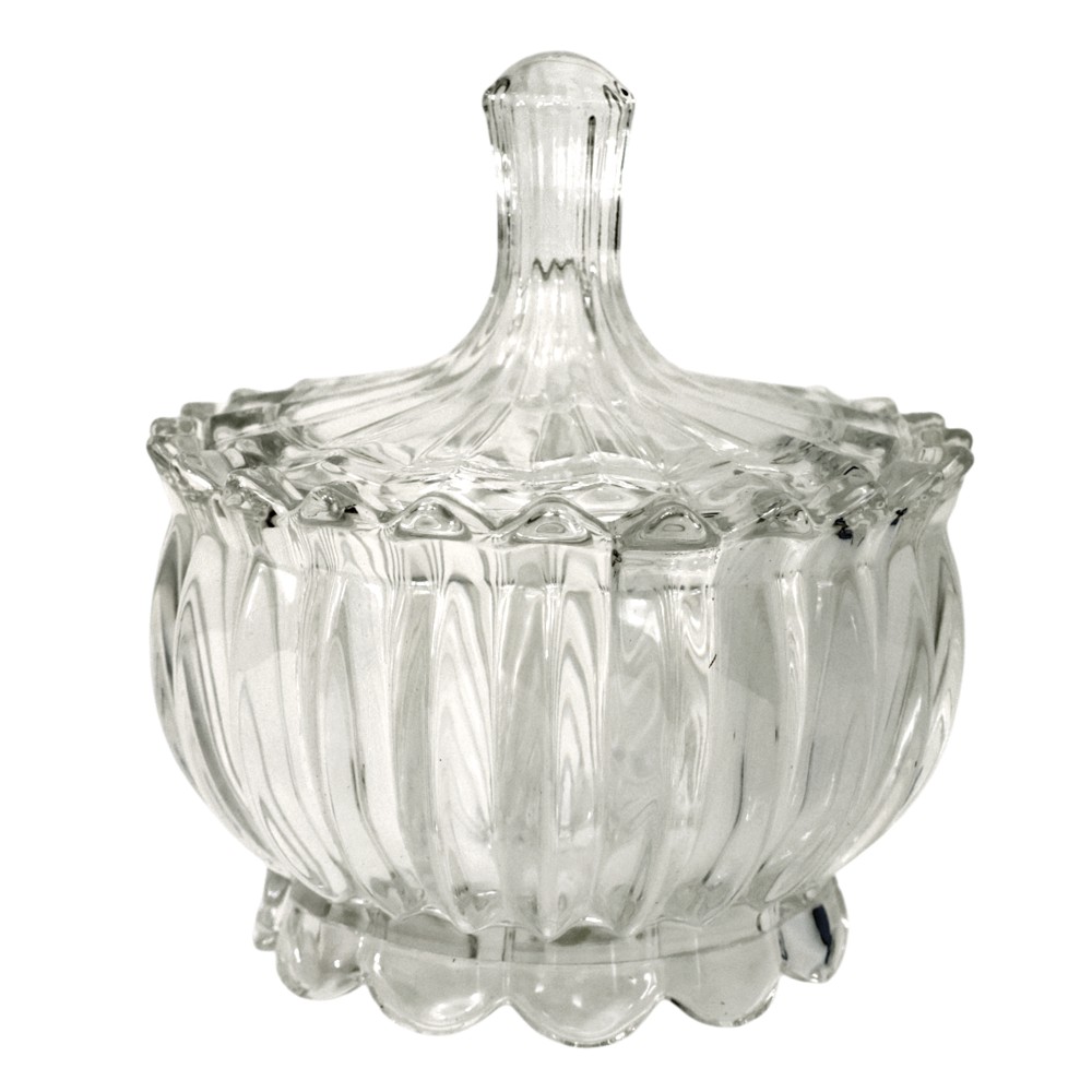 Glass candy jar, transparent, measuring 16 x 14.5 cm. This elegant jar is ideal for storing and displaying candies, chocolates, or small treats. The clear glass allows easy visibility of the contents, adding a decorative and stylish touch to any table or countertop. Durable and easy to clean, it combines practicality with aesthetic appeal for both everyday use and special occasions.