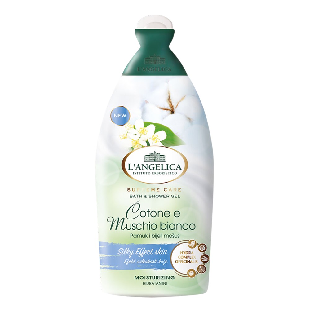 Langelica body shampoo, supreme cotton & muscio bianco, 500 ml. formulated with delicate formulas, paraben-free, silicone-free. Nourishing complex with 5 ingredients rich in active ingredients that regulate skin hydration in different climatic conditions