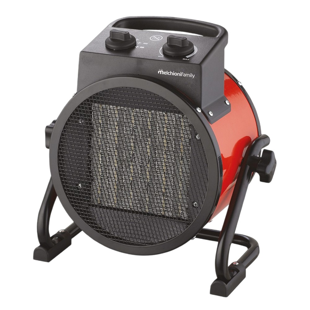 Ceramic fan heater Melchioni 3000W. 2 selectable power levels (1500/3000W). Adjustable thermostat. Overheating protection. Air flow with adjustable height. Metal feet and integrated carrying handle.