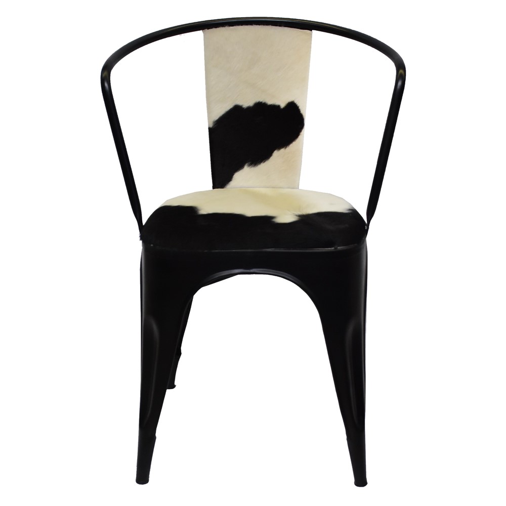 Chair, metal frame, leather seat, white/black, 53x44xH85 cm