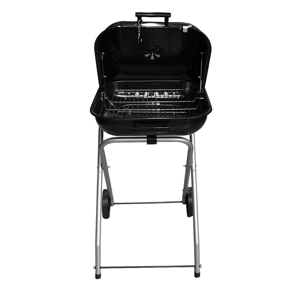 This charcoal barbecue is the perfect choice for those looking for a compact, durable and easy-to-use device to use anywhere in the yard or porch. With foldable legs, it offers comfort and space saving, making it ideal even for small spaces. The size of the grilling area is 46.5 x 46.5 cm, enameled for heat resistance and long-term durability. It has silver powder-coated metal tube legs, which guarantee maximum stability during use, and are foldable for easy transport and storage, saving space when not in use.