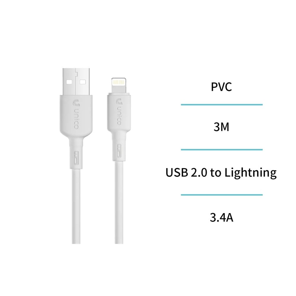 Charging cable, Unico, CB1794, USB - Lightning, 15W, 300 cm, white
