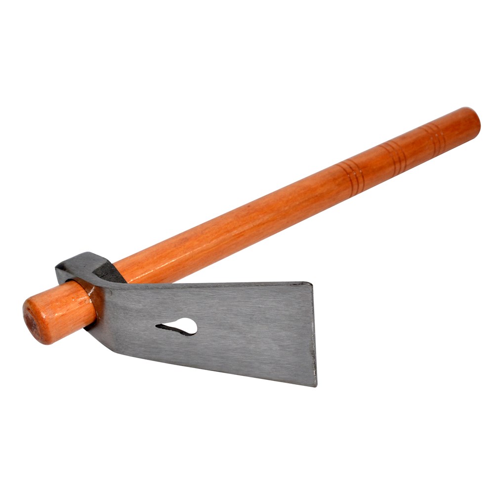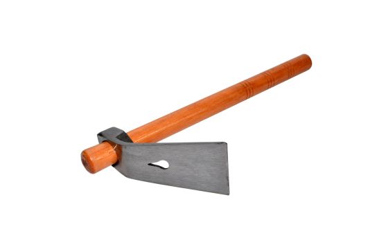 Adze with wooden handle, with 600gr weight, is used by builders, masons, carpenters etc. for the construction of concrete mounting. Has a hardness of 42-48 HRC according to DIN 1041.