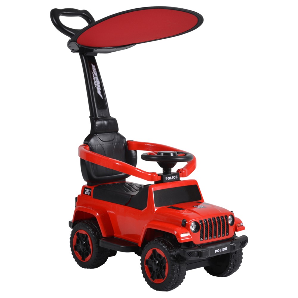 Ride On Car Police is a fun and practical car, designed for children over 24 months and weighing up to 23 kg. Its design helps develop motor skills, balance and safety during play. It has a control handle for the parent, which can be removed if desired, and a protective canopy for sun protection. Equipped with front guards and a special footrest, ideal for young children. It also has buttons with fun melodies on the steering wheel. The musical functions use 3 x AA 1.5V batteries (batteries not included). Easy to maneuver and very comfortable for everyday use