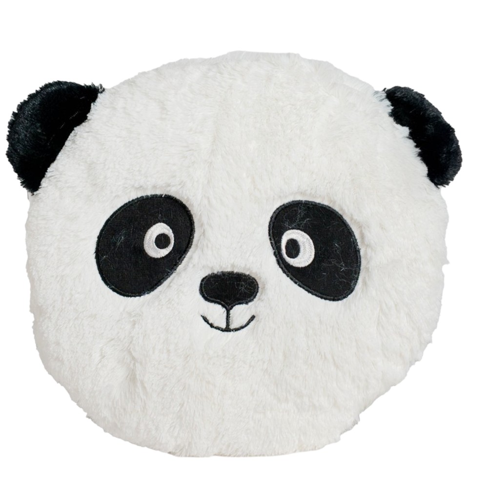 Decorative pillow for children's room with panda decor, made of soft plush material in white and black with embroidered details with filter filling on the inside.