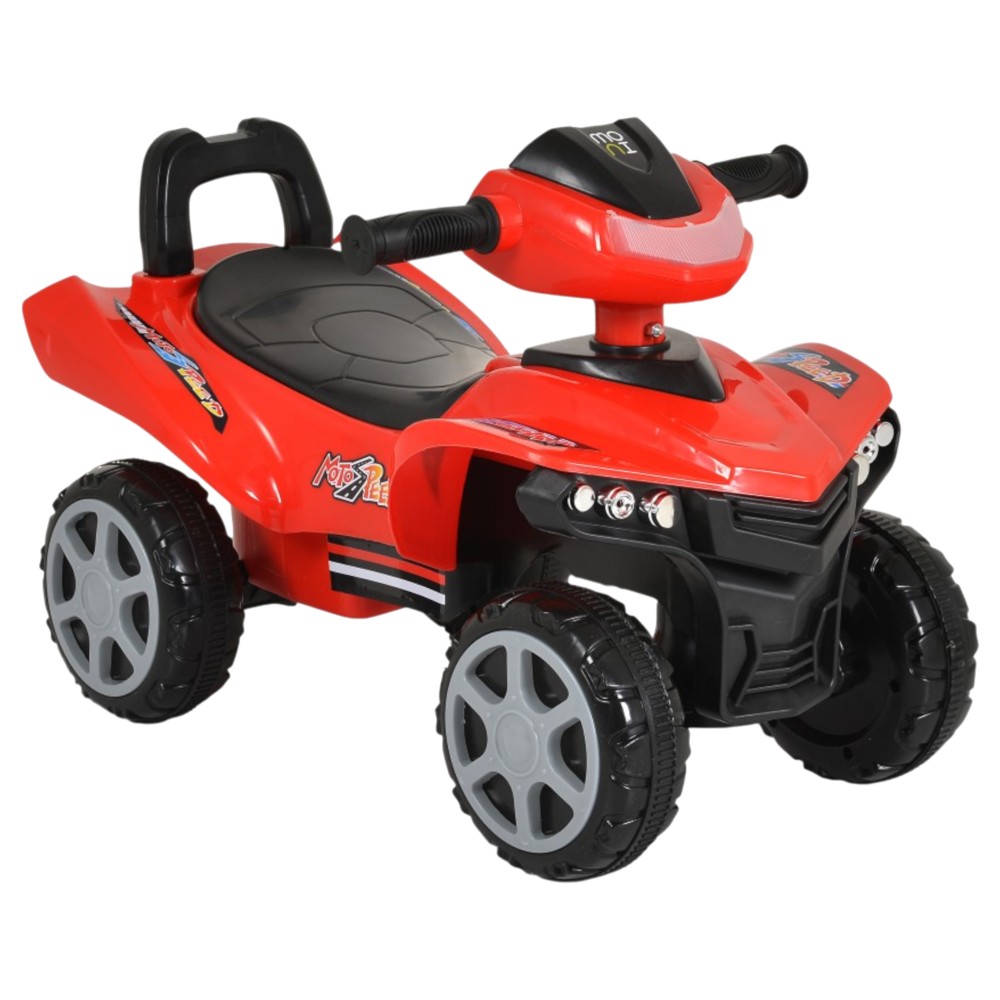 With a sporty design and durable construction, this children's motorbike transforms every move into a fun adventure. Suitable for children over 12 months, it combines comfort, safety and fun functions. Suitable for children over 12 months, maximum weight up to 25 kg. The motorbike has: Plastic wheels for stable and easy movement. Comfortable back support during movement. Lights and sounds are activated by buttons on the steering wheel for more fun play. Practical space under the seat to store favorite toys. Operates on 1.5V AA batteries.