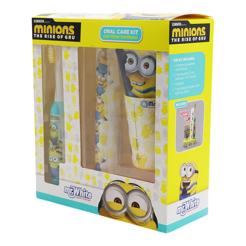 Children's set, Mr White, Minions, toothpaste + brush + holder, +3 year, yellow, 1 pack