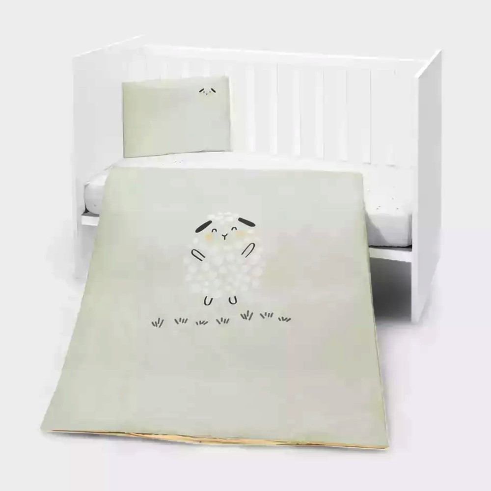 Add comfort, warmth and style to your baby's room with the Sleepy Sheep Bedding Set, a 3-piece set made from 100% premium cotton for exceptional softness and natural breathability. With its cute designs and high quality, this set ensures a safe and pleasant sleeping environment. Made of 100% ranforce cotton, OEKO–TEX certified, soft and safe for baby's sensitive skin. Sweet motif prints and soft colors that fit any baby's room decor. Complete 3-piece bedding set: Pillowcase: 35 × 45 cm, with side opening, Flat sheet: 100 × 150 cm, Duvet cover: 95 × 135 cm, with zipper closure.