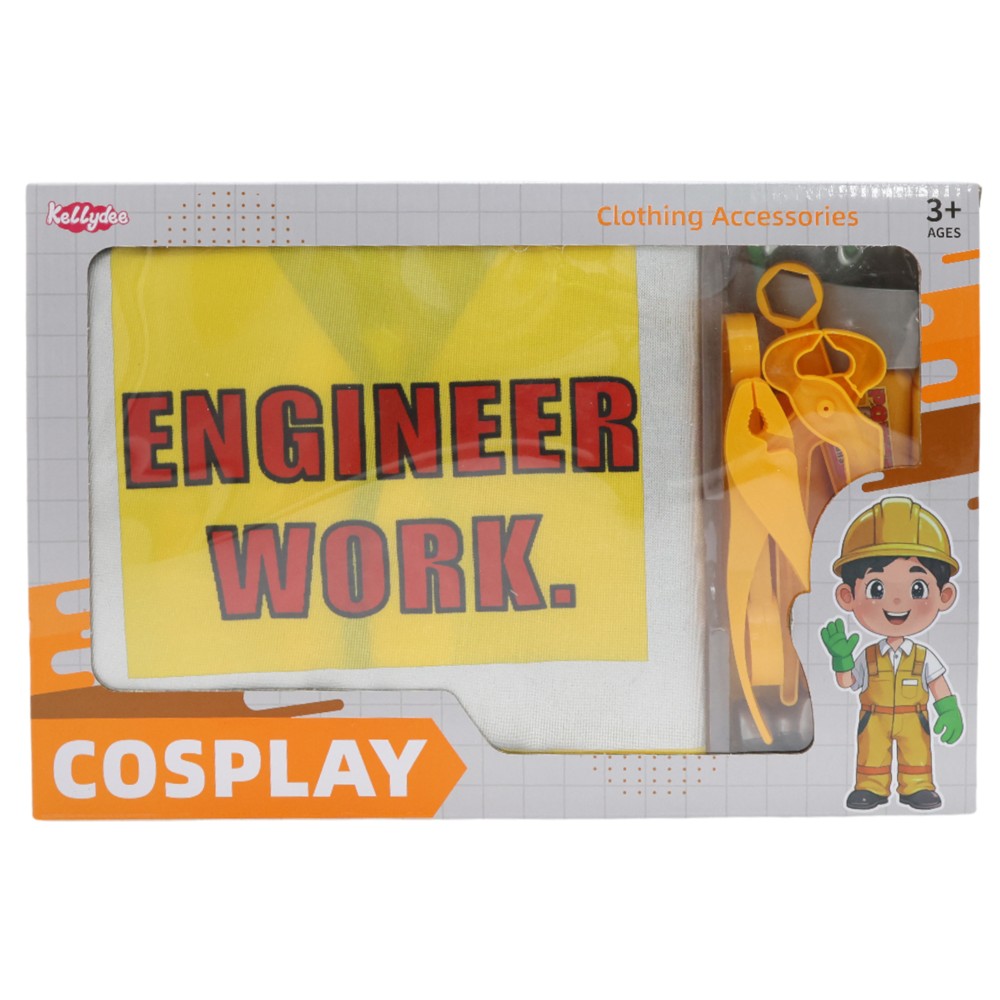 Construction engineer uniform with accessories, a fun and educational set that allows children to experience the excitement of working on a construction site like a real engineer. This set includes a polyester construction uniform and various work accessories, creating a realistic and engaging play experience.
