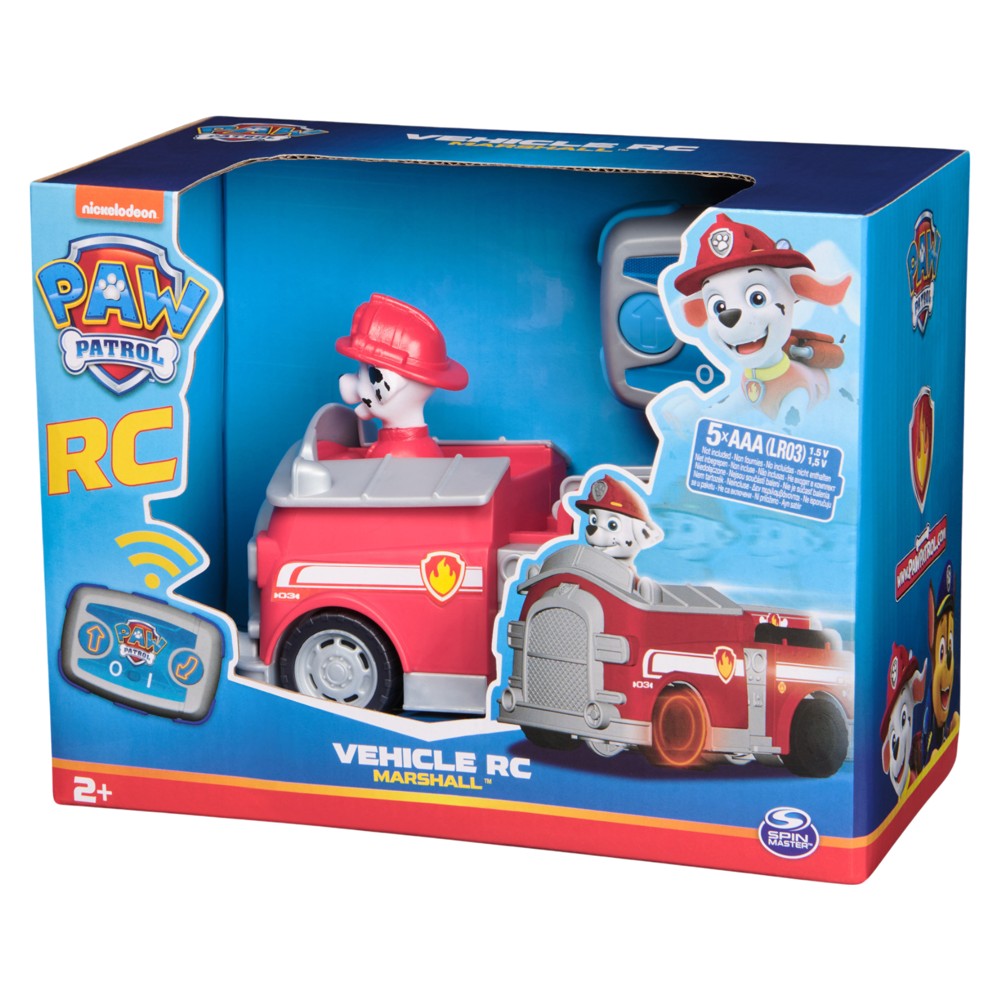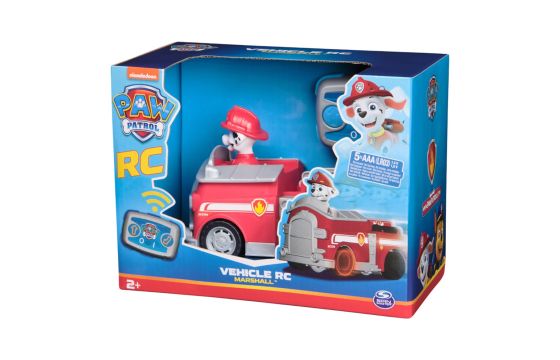 Children's Toy, Paw Patrol, Vehicle RC, Marshall is a toy for children over 2 years old. It includes a remote control (RC) car with the character Marshall from Paw Patrol, which can move forward, backward and perform other maneuvers. Children can follow Marshall's adventures and create exciting scenes.