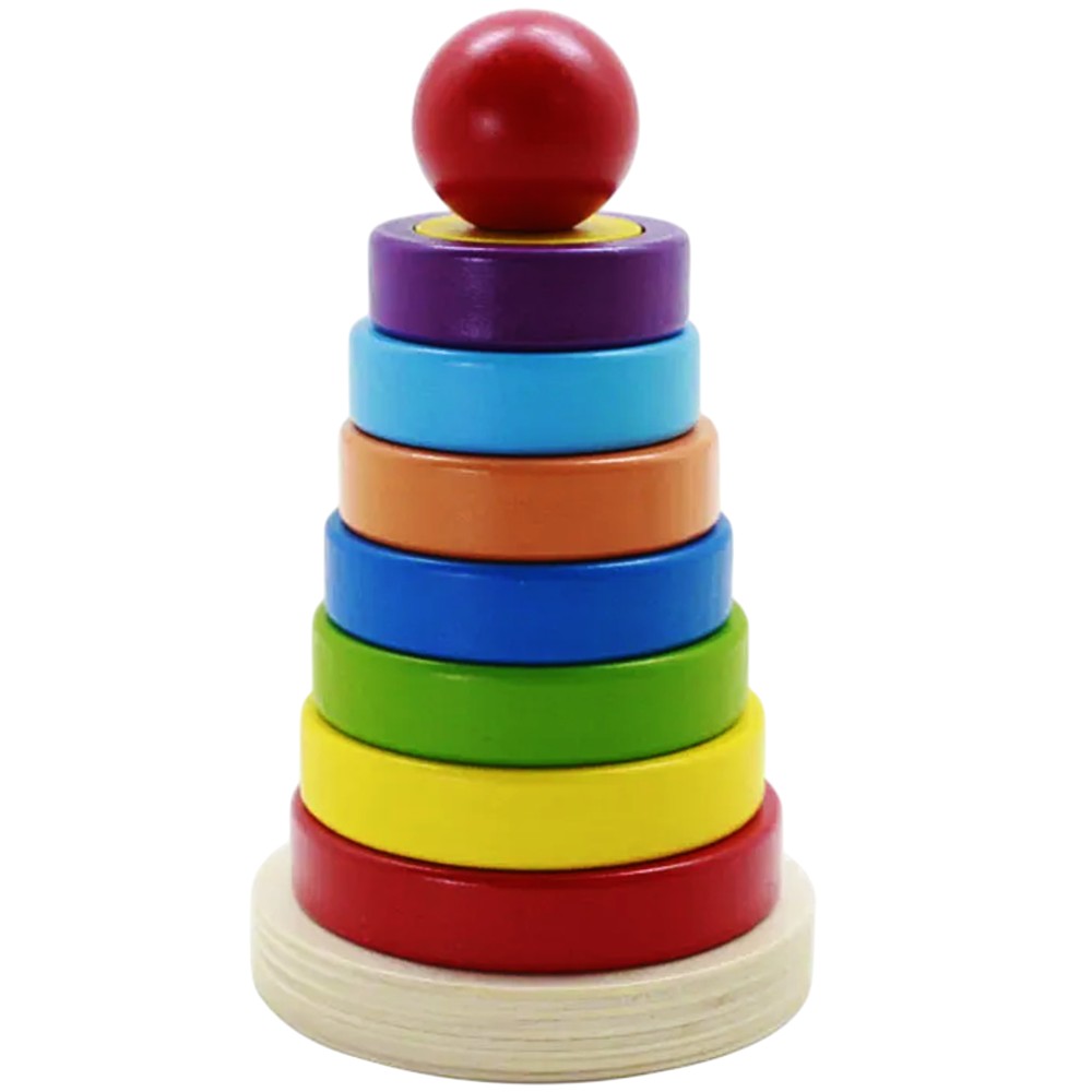 The Rainbow Tower is a classic wooden educational toy that combines fun with the development of basic skills in children. With a simple but attractive design, this toy consists of brightly colored rings that are placed one on top of the other, forming a complete tower. The compact 16x9 cm dimensions make it easy to hold in small hands, while the wooden material is durable, safe and environmentally friendly. The bright rainbow colors help children learn and distinguish colors, as well as develop hand-eye coordination, logic and motor skills.