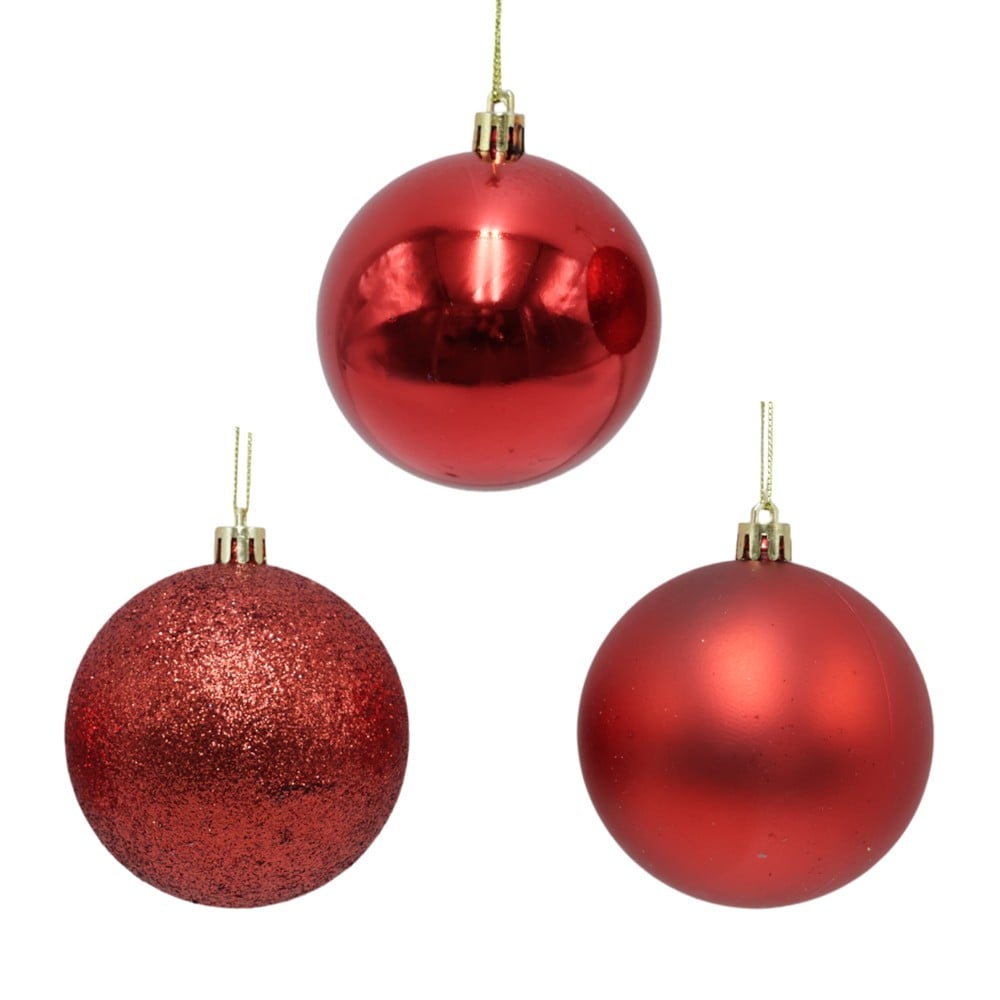 Christmas baubles (pk 3), plastic, red, 3 models, 6 cm