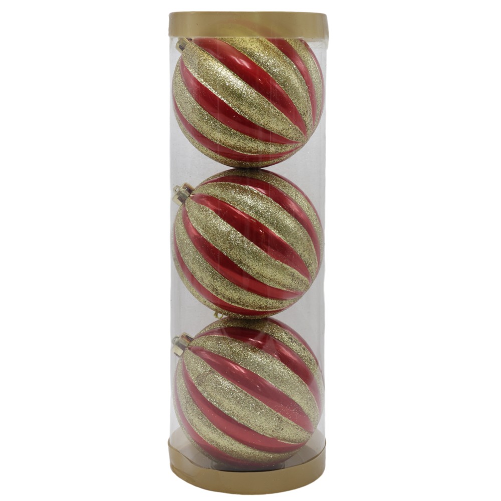 You're reviewing:Christmas baubles (pk 3), plastic, red, gold & glitter, 15 cm