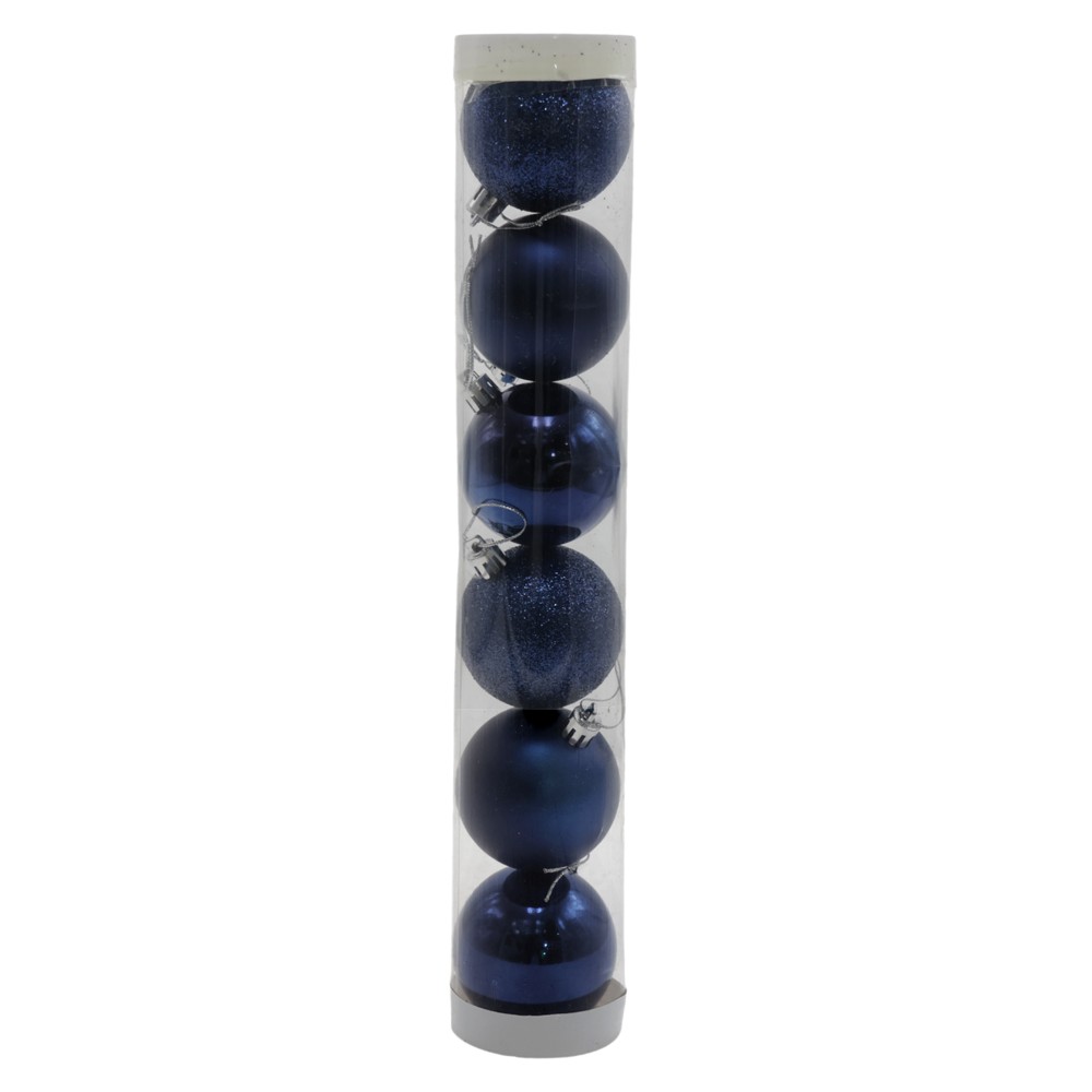 Christmas baubless (pk 6), plastic, blue, 3 models, 6 cm