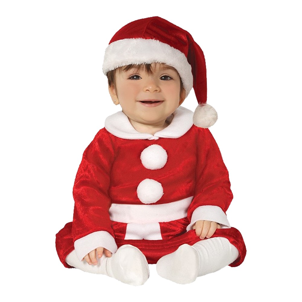 Santaclaus costume for children made of polyester, red and white, for age 12-18 months. The magic of the end-of-year holidays will be closer to your children with these Christmas-themed dresses decorating your festive environments.