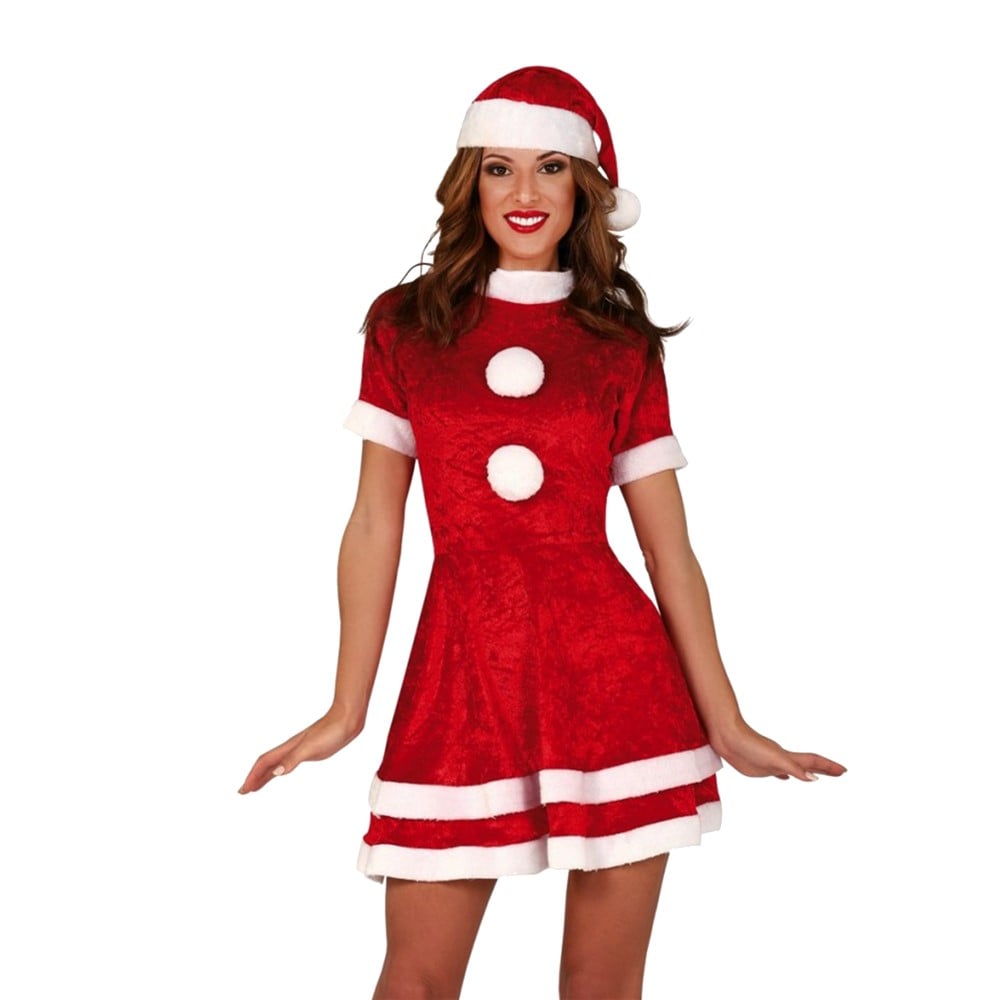 Santaclaus suit for women made of polyester, red and white, size 36-38. The magic of the end-of-year holidays will be closer to you with these Christmas-themed dresses decorating your festive surroundings.