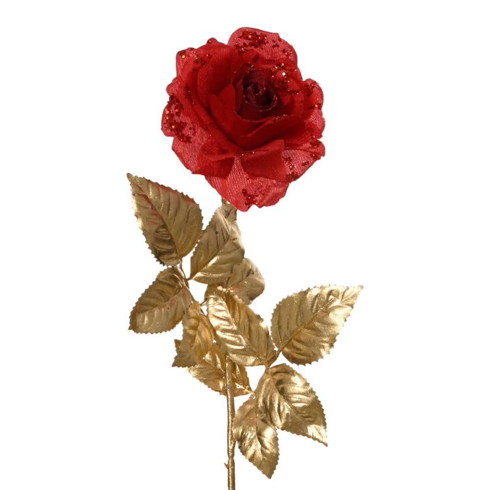 Christmas decorative flowers, rose, gold color with red, L.10cm x W.10cm x H.72cm