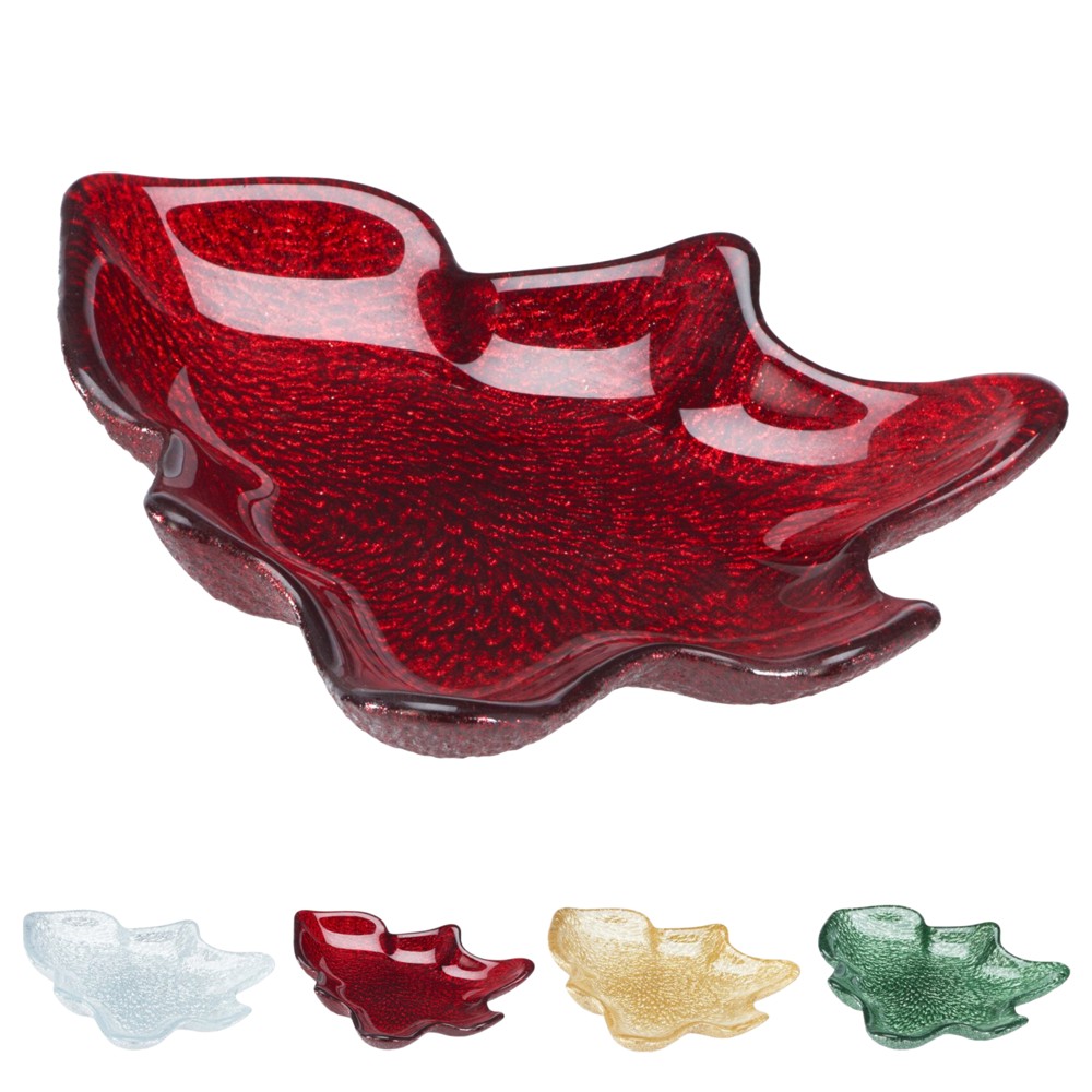 Christmas decorative plate, New Year's tree, glass, red/white/gold/green