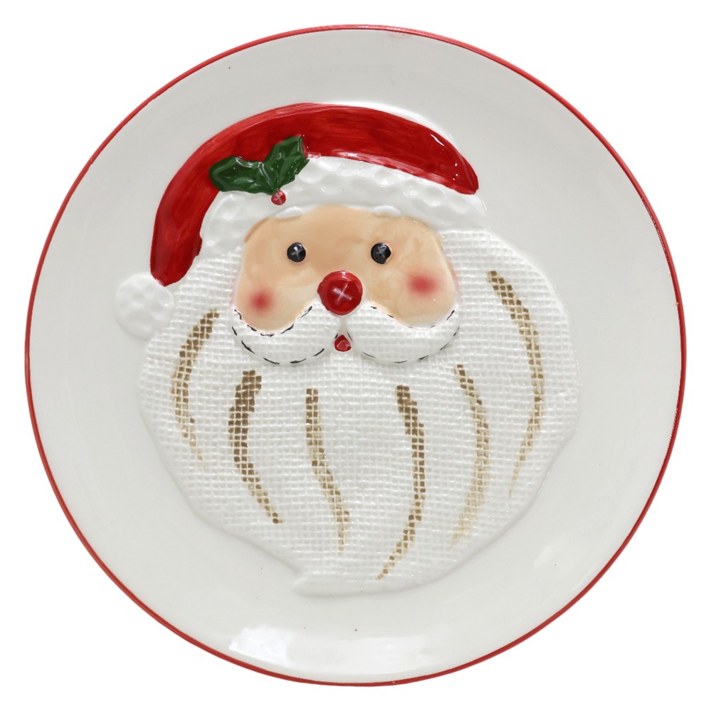 Christmas decorative plate, Santa face, porcelain, white color, 26x26x2.5 cm