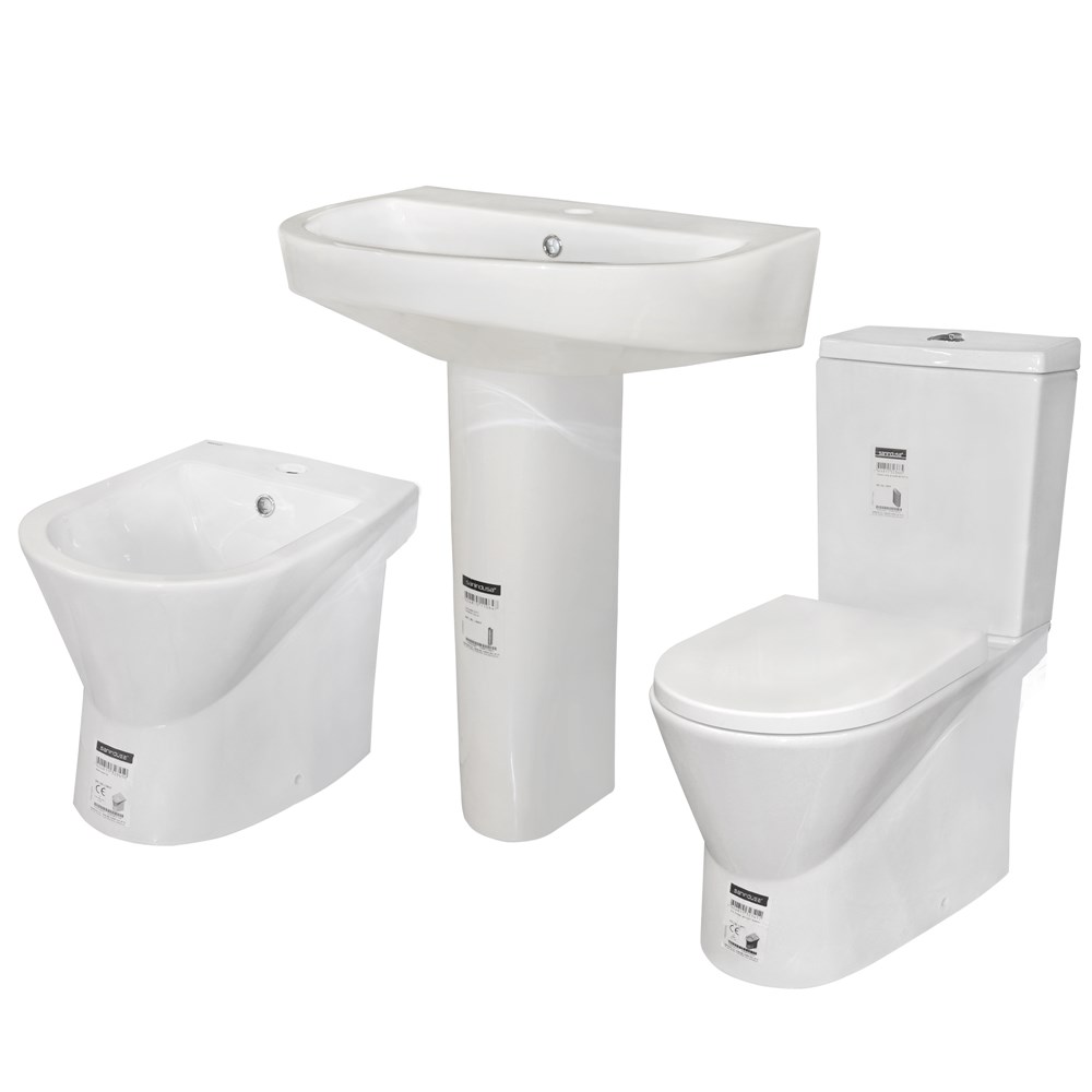 Universal toilet set + Bidet + CITY sink features the essence of traditional curved shape with delicacy and clean lines. With a solid and symmetrical construction, this toilet set delivers style to your bath. The white porcelain color is easily combined with any decor. The toilet set features a simple installation system and is easy to install. Add your bath a practical and quality product!