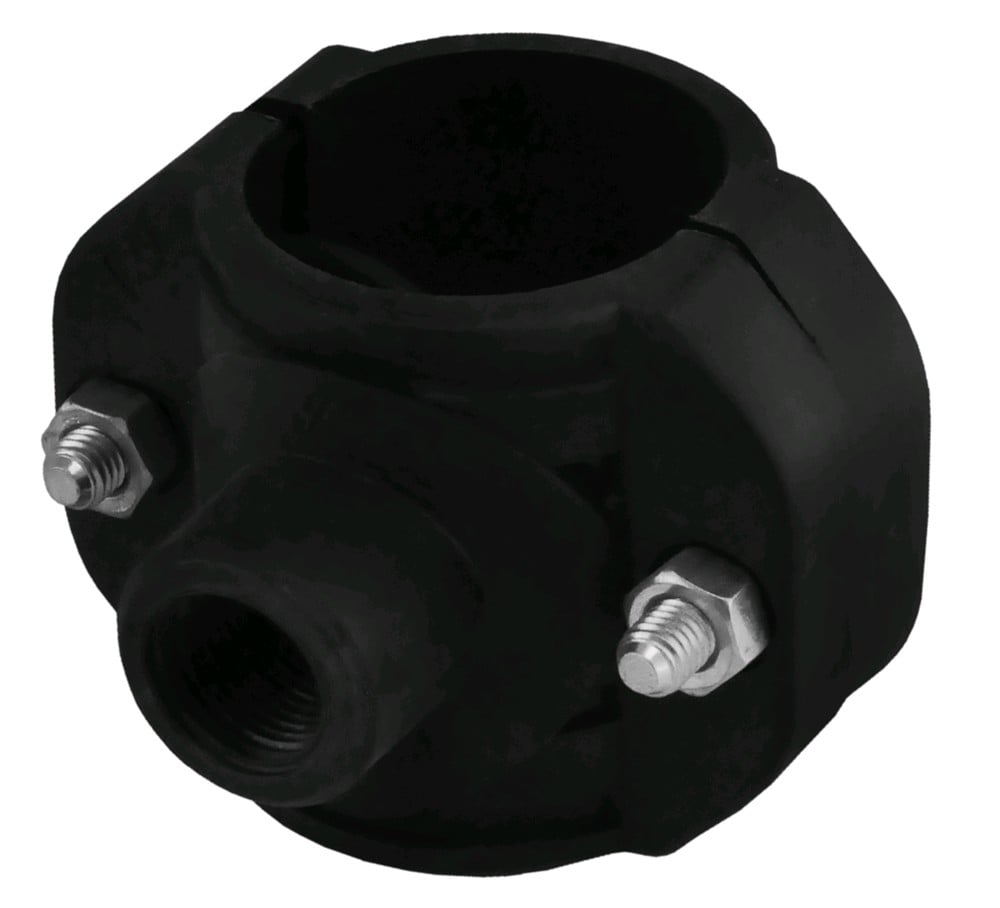 Clamp Saddle of PP 40mm with gate 1/2" used widely today in European for making drinking water from main lines. Clamp Saddle Ø 40x1/2" with female gate caught with main line pipe mechanically with bolts, for joining the fillet recommend tu use teflon. Manufactured with European standards, resistant to corrosive materials designed to withstand pressure up to 10 Bar.
