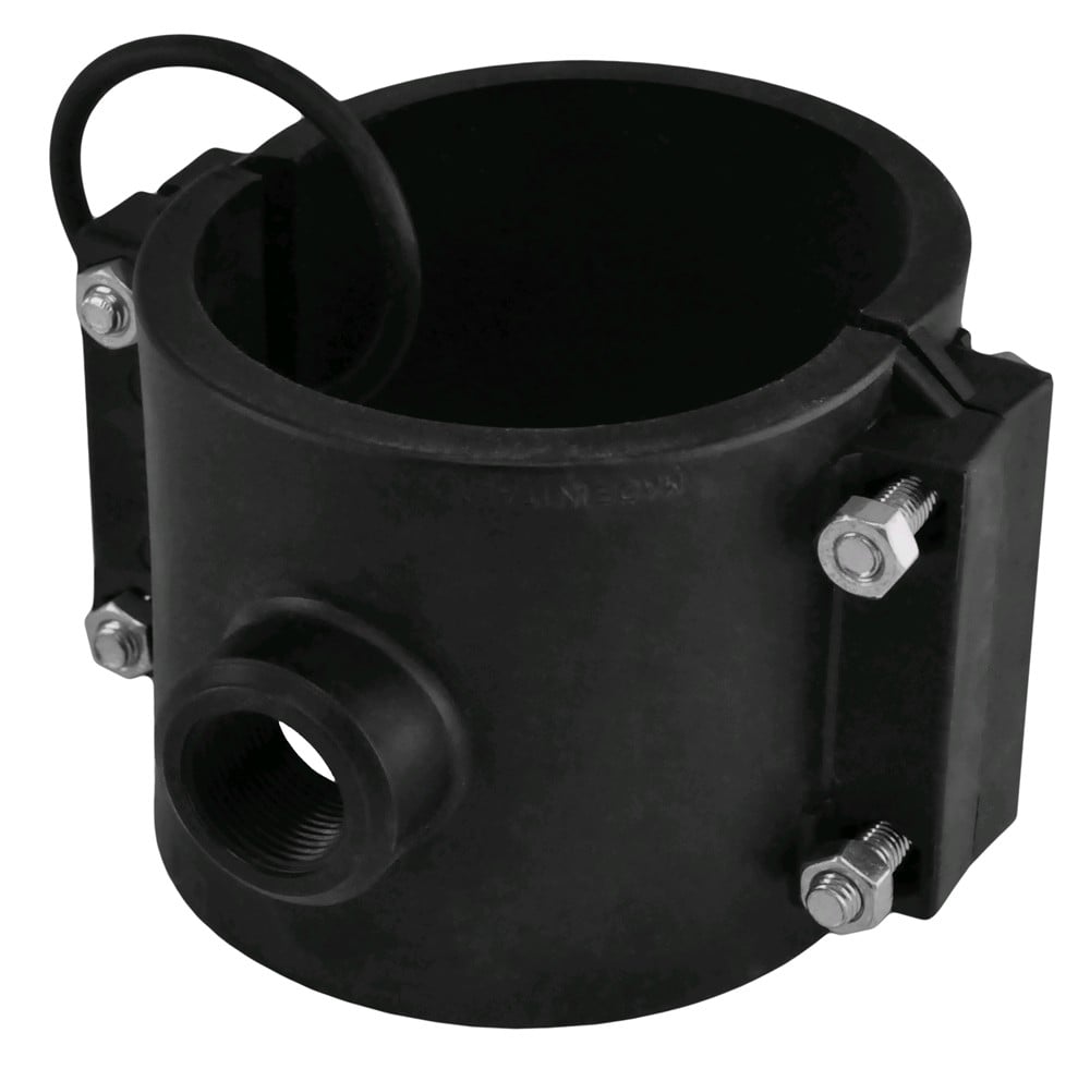 Clamp Saddle of PP 90mm with gate 3/4" used widely today in European for making drinking water from main lines. Clamp Saddle Ø 90x3/4" with female gate caught with main line pipe mechanically with bolts, for joining the fillet recommend tu use teflon. Manufactured with European standards, resistant to corrosive materials designed to withstand pressure up to 10 Bar.