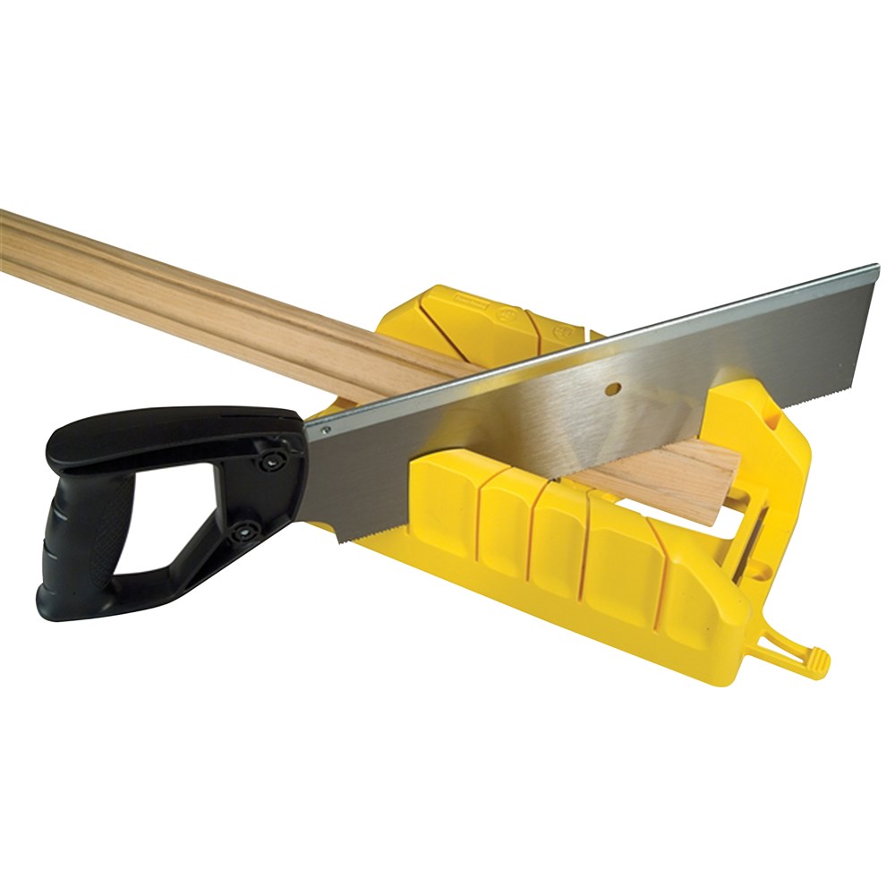 The mitre box has 90° and 45° mitre slots as well as 22.5° slots for octagon shapes and is of a one piece injection moulded design for extra strength.