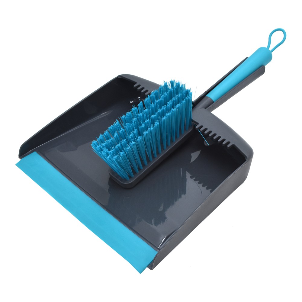 Cleaning set, which contains a brush and a dustpan, for cleaning debris. The brush has a structure made of plastic material, with synthetic bristles and an ergonomic handle, which facilitates holding during use. The set is used for cleaning debris and dust in small spaces. This product is practical to use and can be easily cleaned.