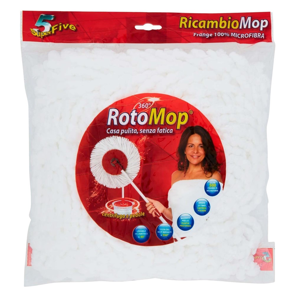 Replacement cleaning pad for set code 7802740, made of 100% pure microfiber material for an excellent, thorough cleaning without scratching even on the most delicate surfaces. The RotoMop bristles, in 100% microfibre, are of different lengths and are uniformly placed on the base of the mop, in order to allow a larger cleaning surface and guarantee not to scratch the surfaces.