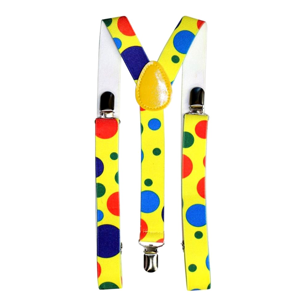 Suspenders klouni si një plotësues i kostumit tuaj të kllounit për festen e halloweenit dhe Karnavalet. Me kte aksesor ju mund të personalizoni kostumin tuaj origjinal dhe do të dukeni si askush tjetër në festat tuaja të veshjeve të zbukuruara, Karnavalet, Vitet e Ri,halloween.