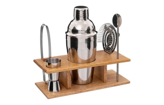 The cocktail preparation set (PK 6) is a suitable set for preparing and serving cocktails. It includes elements made of stainless steel and wood, giving it an attractive and functional combination.