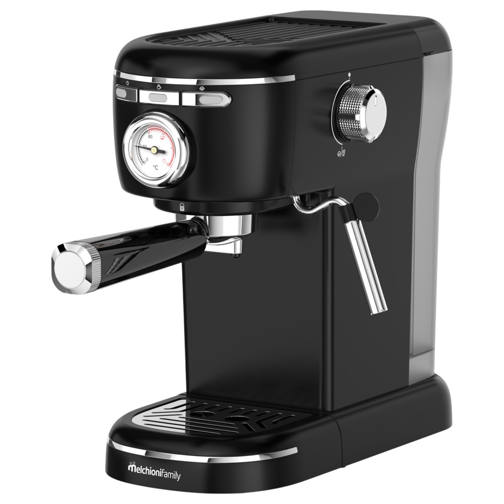 The AROMATICA PLUS 3in1 black coffee machine is a versatile and high-performing appliance, ideal for those who want to enjoy professional-quality coffee comfortably at home. Thanks to the 20-bar pump pressure, it ensures optimal extraction that enhances aroma and body, just like at a café. The machine supports various types of coffee: capsules compatible with Nespresso, E.S.E. pods, and ground coffee, offering maximum freedom of choice to satisfy every preference. The 1.2-litre water tank provides good autonomy, while the adjustable manual milk frother allows you to prepare creamy milk foam for cappuccinos and other milk-based drinks. The die-cast aluminium boiler with a temperature indicator guarantees a stable operating temperature up to 64°C, essential for perfect and consistent extraction. With a power consumption of 1,100 watts and standard 220-240 V power supply, the machine is efficient and suitable for everyday use. Complete with practical accessories such as a measuring spoon and adapter arms for capsules, pods, and single or double portions, the AROMATICA PLUS 3in1 stands out for its functionality and ease of use. The espresso and lungo dispensing modes allow you to customise your drink according to individual tastes, offering a consistently satisfying and professional coffee experience.