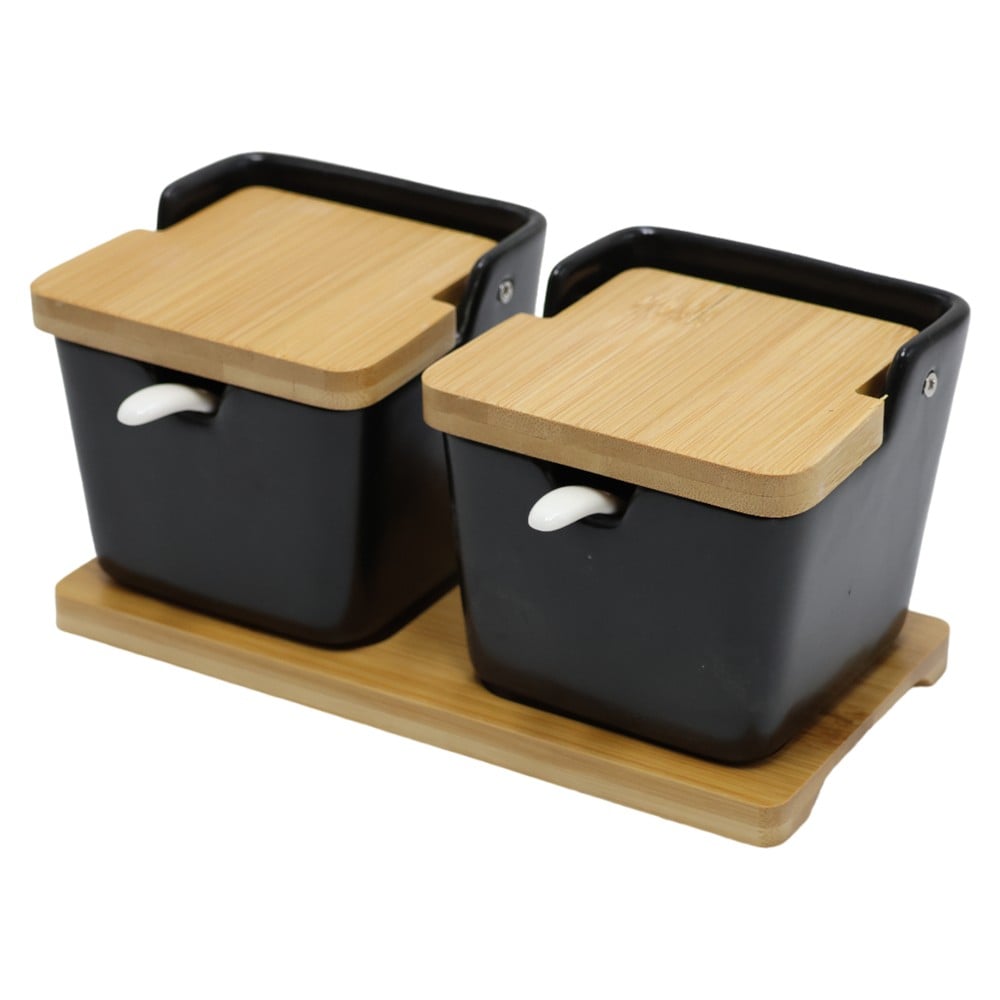 Set of two elegant brown and sugar holders, made of ceramics and bamboo. The product comes in black and brown, with 10x20x9 cm dimensions, offering a great choice for organizing the kitchen.