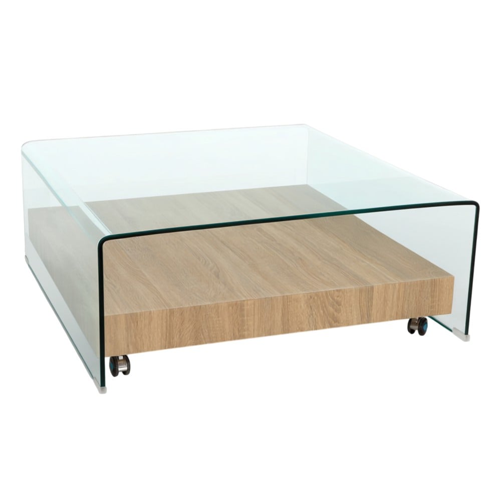 This coffee table measuring 100x100xH40 cm is an elegant and functional choice for any living room. The 12 mm thick tempered glass surface is transparent, bringing a modern look, while guaranteeing durability and safety in use. The structure is built from MDF with a sonoma color finish, adding warmth and a natural touch to the overall design. The clean lines and balanced dimensions make it suitable for both larger spaces and more compact environments, turning it into a practical and aesthetic element at the same time.