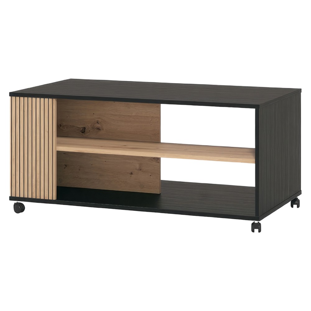 Coffee table, Correze, on wheels, melamine, oak/black, 101x54.5xH46.5 cm