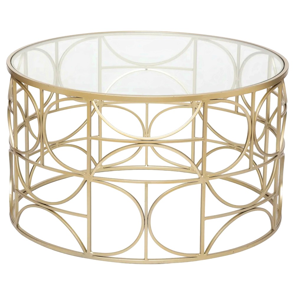 The Atmosphera "Suite" table features a gilded metal frame and a tempered glass top, bringing an elegant Art Deco touch to your living room. Its round, compact shape makes it suitable for any space, even smaller rooms. The sturdy glass surface is easy to clean, simply wipe it with a sponge or soft cloth. The geometric design on the gilded base perfectly captures the Art Deco spirit and pairs beautifully with gold, black, or white elements.