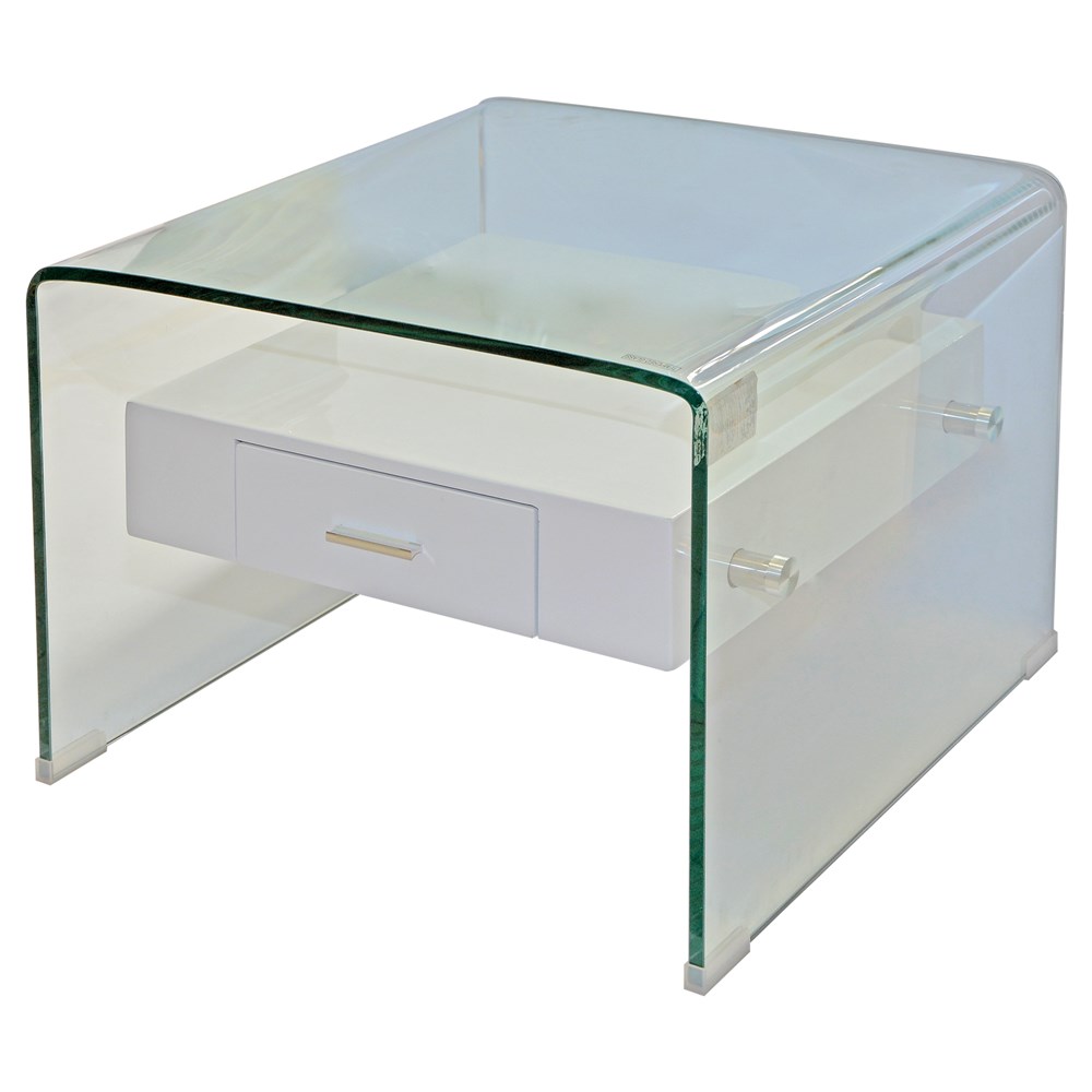 Coffee table with drawer, MILANO, tempered glass and MDF, clear/white, 55x55xH42 cm