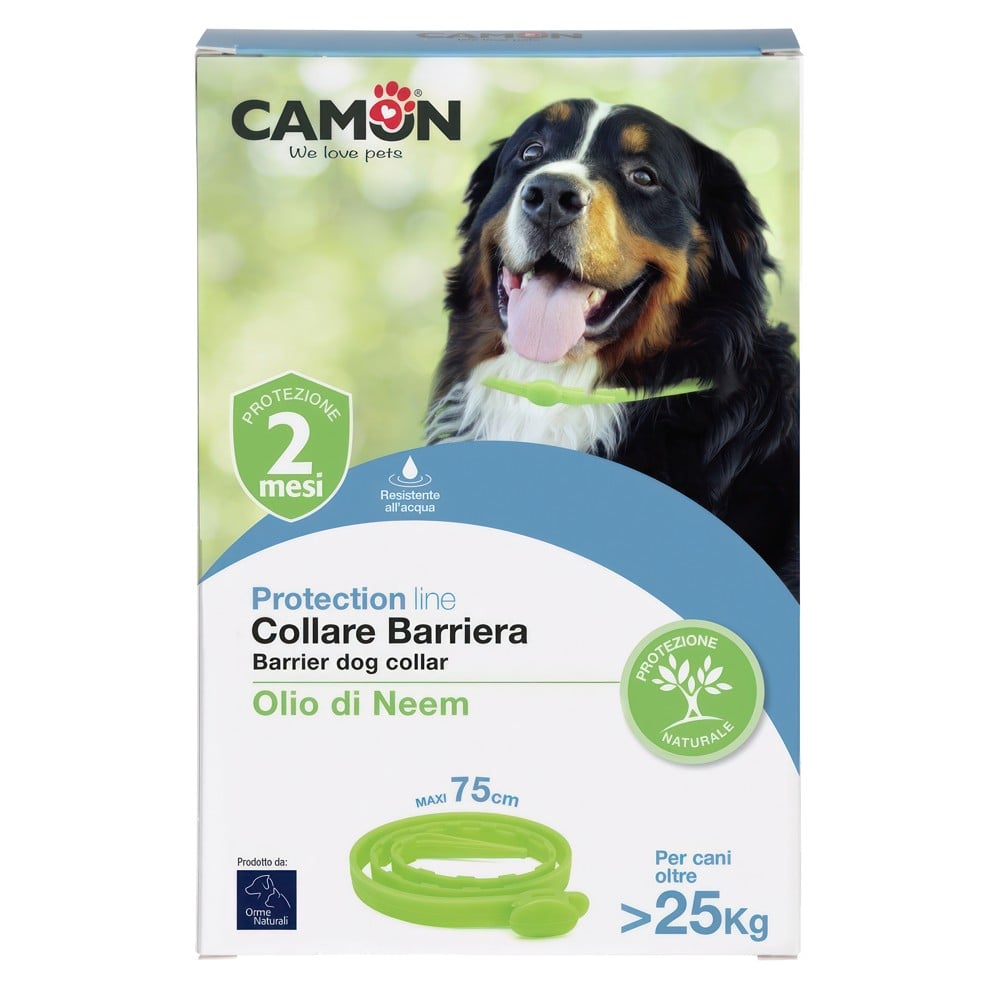 It can be used alone or in combination with the lotion or the spot-on tubes. It is a natural product: safe for pets and for the environment. It is waterproof and guarantees a 2-months-long protection.Its recommanded to be used for dogs larger than 25 kg.