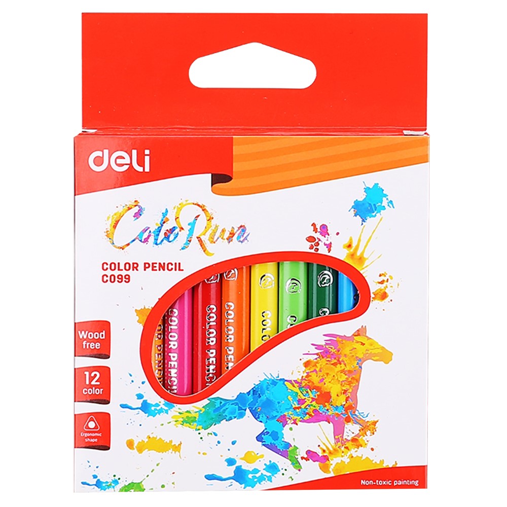 The plastic pencils of the "Color run" series are in wonderful and vivid colors which slide on the paper. Thanks to the comfortable triangular shape and a nice plastic body to touch, the coloring will bring great pleasure and will leave a pleasant lasting impression on any child. Deli pencils are CE certified. Pencils are not recommended for children under 3 years of age.