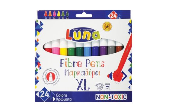 Colored felt-tip pens for kids, made of durable plastic material, with a cap that allows ventilation, with a reinforced felt tip, that resists the pressure exerted by the children's hand and has a line width of 5 mm. They contain dermatologically tested water-based ink, which can be easily cleaned from hands and clothes, with soap and water. The pens are used in schools and kindergartens, to draw or color and help develop imagination and creativity in children. This product is suitable for use by children from 6 to 13 years old.