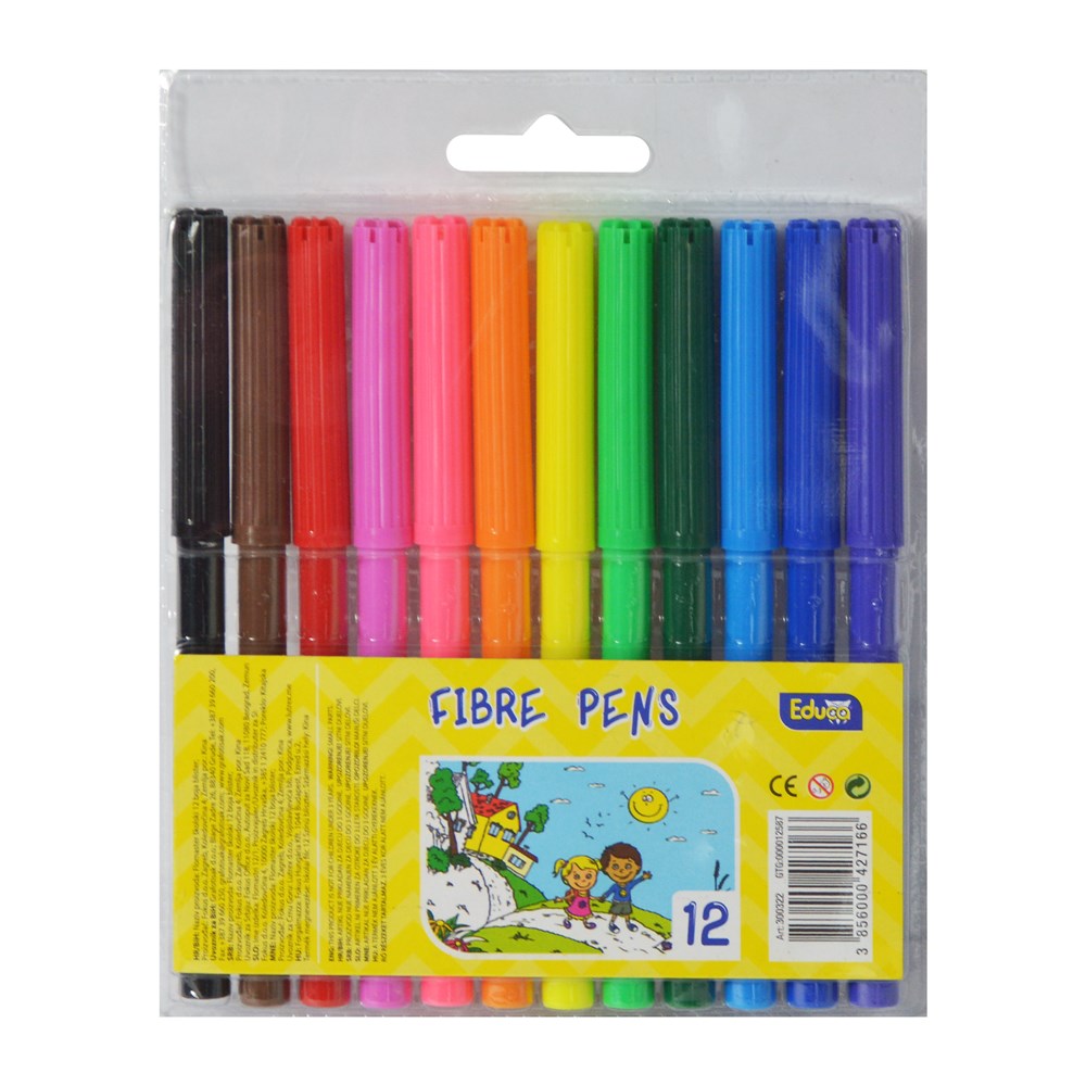 Colored fibre pens, for children, with a structure made of plastic material and a thin tip with fiber composition, with a diameter of 2 mm. The markers are equipped with a protective cap and have an ergonomic structure, which makes them easy to use and practical. This product is suitable for use by children over 3 years old.
