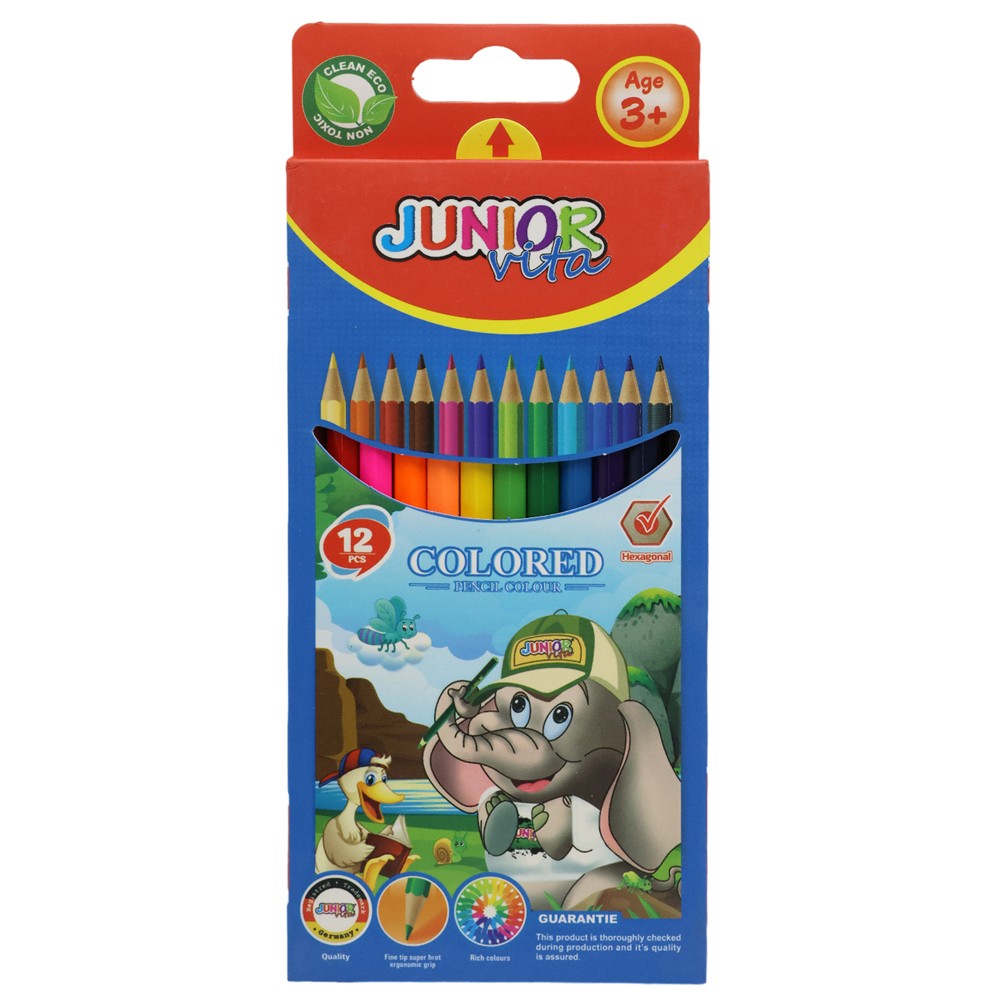 Junior Vita Colored pencils, with 12 different colors. Each pencil is designed to deliver bright, long-lasting colors ideal for drawing. The package contains 12 pencils in different colors, stimulating children's creativity and imagination.